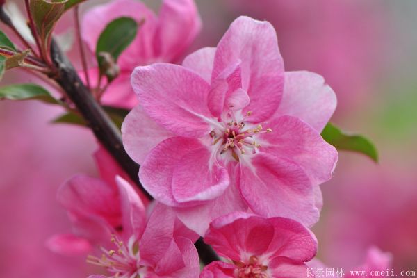 海棠,樹體總高0.4~1.9m高間,樹葉形狀根據種類有差異有差異,有一些很細很長,有一些接近橢圓,海棠花朵顏色是充實,如國旗紅,粉色,鵝黃黃,淺白色等,開花時間比較長,開花量大,每年是花開的季節期間從6月中旬到8月下旬,果實9~10月成熟,有較高的發芽水平。