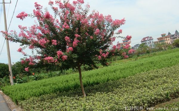 紫薇在園林中使用很普遍,因其開(kāi)花時(shí)間為雨季,是缺花氣候,粉色花蕾格外亮麗,給酷熱的雨季帶去一些涼爽,是私家園林欣賞的好種類(lèi)材料。紫薇可用于栽植花鏡,圖形,街道綠化,小區(qū)綠化,公園綠化等,見(jiàn)效快,緩苗期短暫,綠化效果好。另外它也也能夠與很多種園林苗木組合應(yīng)用,創(chuàng)造各種景觀,比如與龍柏,美人梅,高山黃楊,八仙花,叢生紫荊,紫羊茅,菊花苗,大葉黃楊,金葉女貞,蔥蘭,黃槽竹,鋪地柏,鉛筆柏,馬尾松,四季凌霄,塔柏球,垂枝梅,刺梅花,月季樹(shù)等一塊栽植。